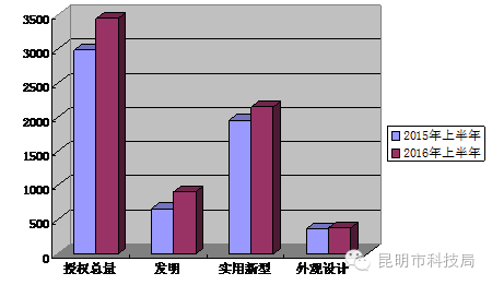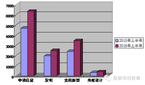 1.昆明市2016年上半年专利申请持续增长、同比增长超三成。